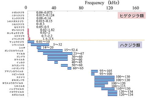 鳴音周波数引用文献:ヒゲクジラ類 David